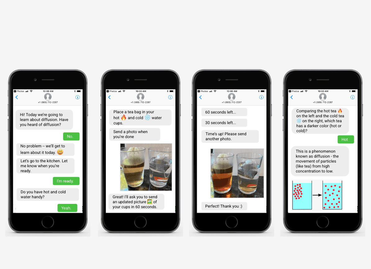 Conducted pilot testing and design interviews with kids and parents for feedback on the texting interface, activity design and scripting